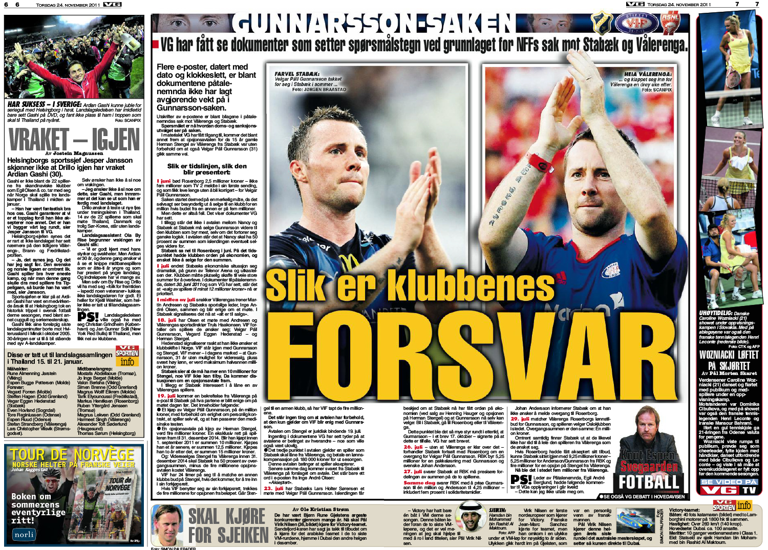 Erik Loe var «sjokkert over at TV 2 fikk tak i innholdet i Gunnarsson-kontrakten, et ikke-offentlig dokument som bare Vålerenga, Stabæk og fotballforbundet hadde tilgang til».