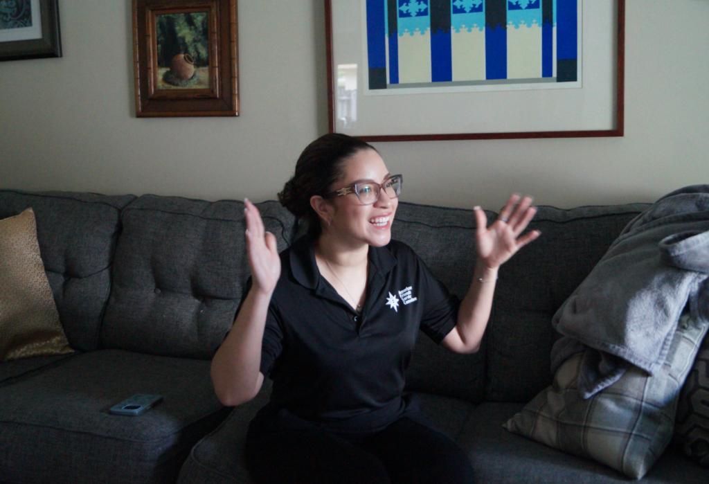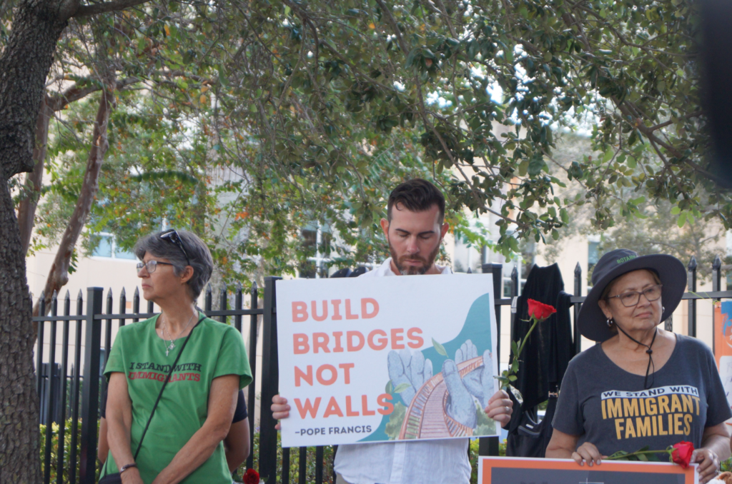 Idalia er til stede ved ICE-kontoret i Miramar sammen med organisasjonen American Friends Service Committee (AFSC). Kveker-organisasjonen fikk Nobels fredspris i 1947 for sitt humanitære arbeid.
