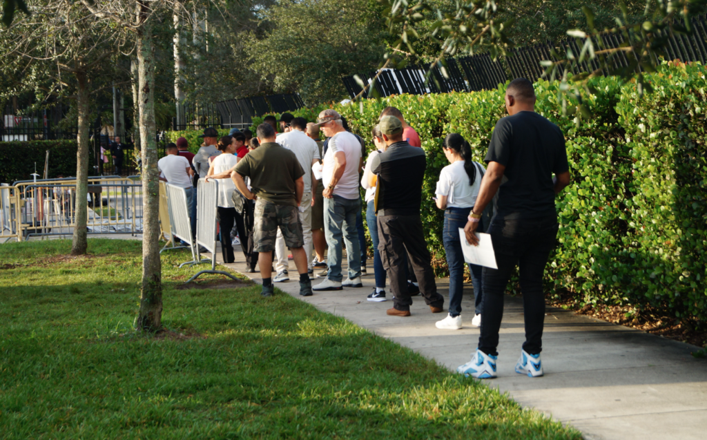 Det er onsdag 22. oktober, klokken er 08:30, det begynner allerede å bli varmt. Køen med innvandrere foran inngangen til ICE-bygningen i Miramar, nordøst i Miami, blir stadig lenger.