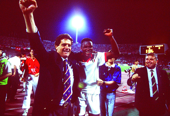 Fabio Capello tok over restene av Arrigo Sacchis Milan i 1991, et lag Sacchi selv følte var på vei ned. Der skulle den tidligere skoselgeren ta feil, for under Fabio Capello vant Milan fire av de neste fem scudettoene, og mellom mai 1991 og mars 1993 gikk laget 58 seriekamper uten tap. Capellos tilnærming var litt annerledes en Sacchis – mens Sacchi jobbet for å utvikle et perfekt kollektiv gjennom evige repetisjoner på treningsfeltet, fokuserte Capello på å sette en solid defensiv struktur (med en bunnsolid forsvarsrekke og to primært defensive spillere sentralt på midten), og så gi lagets angrepsspillere stor frihet til å løse sine oppgaver. Denne filosofien passet godt med det faktum at klubbeier Silvio Berlusconi hadde en lei tendens til å kjøpe langt flere playmakere enn det ville være mulig å få plass til i et konvensjonelt system. I Champions League-finalen i 1994 var Barcelona, trent av Johan Cruyff, store favoritter etter å ha vunnet fire strake seriemesterskap, og Milan manglet sentrale spillere som Marco van Basten og Franco Baresi. Faktisk var det ventet en 90 minutter lang batalje mellom Milan-forsvaret og Barcelonas tilsynelatende ustoppelige angrepsduo, Hristo Stoichkov og Romario. Slik gikk det ikke. Anført av en gnistrende Dejan Savicevic kjørte Milan over sin motstander, i det som fortsatt huskes som et av tidenes Champions League-oppgjør. Capellos Milan manglet kanskje den kollektive perfeksjonen Sacchis Milan tidvis spilte opp mot, men laget er likevel er eksempel på hvordan et solid defensivt fundament kan gi offensive genier frihet til å uttrykke seg på. I Champions League-finalen i 1994 stilte Barcelona i en 4-3-3-formasjon spekket med offensiv briljans, mens Milan, i en litt kjedelig 4-4-2 med to grovabeidere på midten, endte opp med å gi katalanerne en leksjon i offensiv fotball.