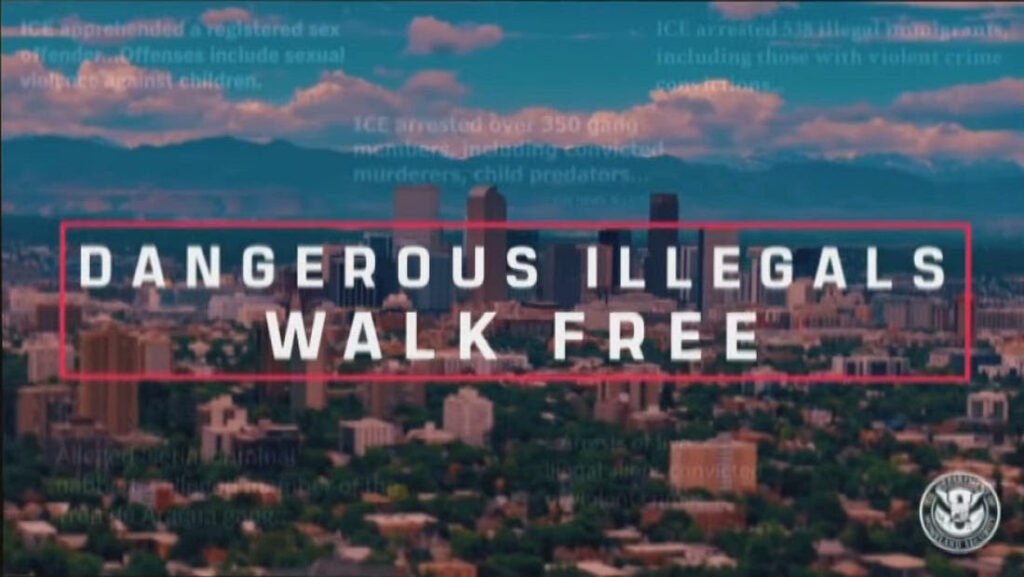 «Dangerous Illegals walk free» lyser det på skjermen med ICE-logoen nederst til høyre.