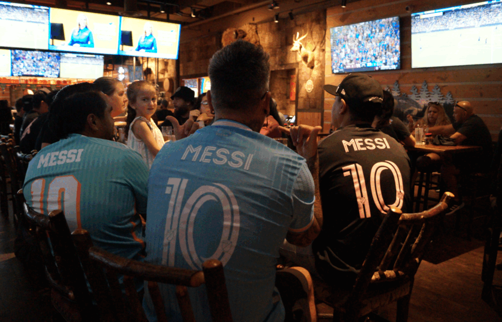 Så fort Inter Miami og Nashville går på banen, skifter flertallet av skjermene over til MLS-kampen og kommentatorlyden overdøver stemmene i lokalet.